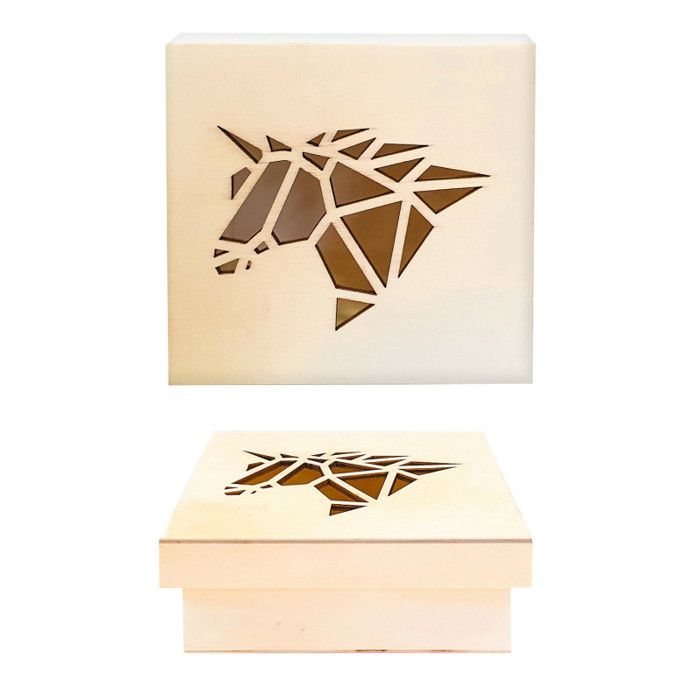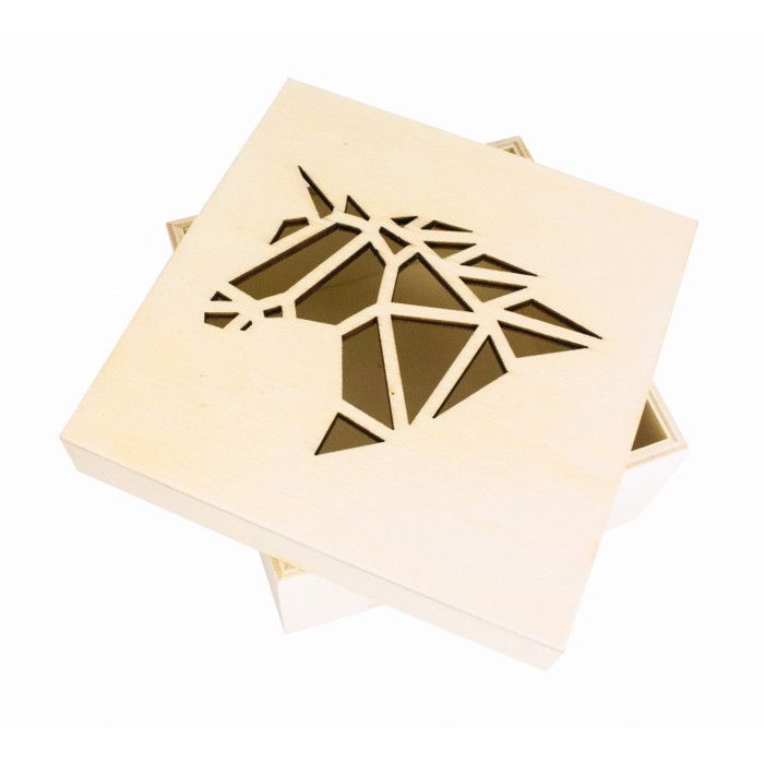 Boîte en bois - Découpe origami - Licorne - 11,3 x 11,3 x 5 cm - Beige - Enfant Fille