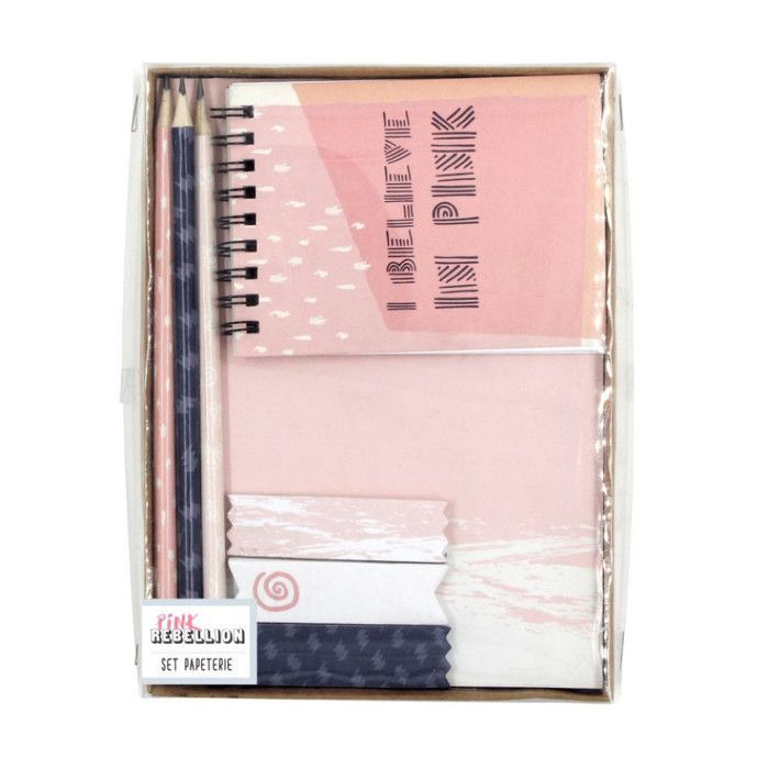 Set de papeterie : carnet, crayon, note adhésives Rose