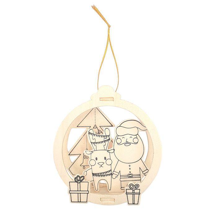 Suspension Scène de Noël en bois motif Père Noël 10,5 x 11,5 cm — купить товар онлайн с бесплатной доставкой по всему миру!