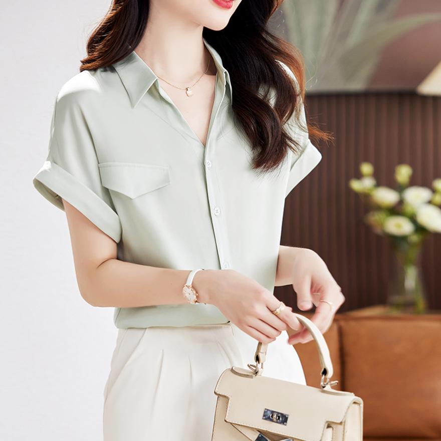 Модная трендовая шелковая рубашка женская с коротким рукавом летняя новая темпераментная из тутового шелка топ — купить товар онлайн с бесплатной доставкой по всему миру!