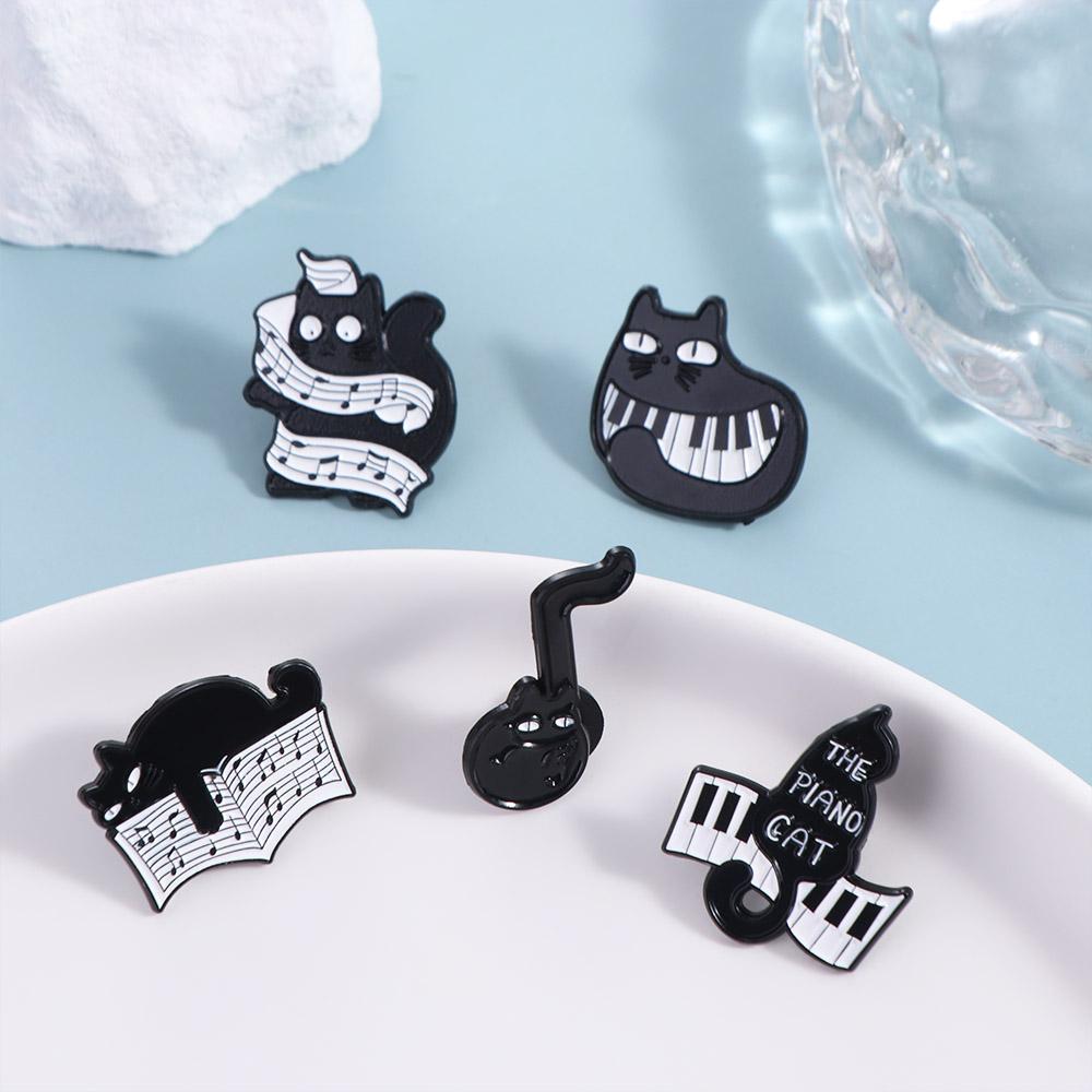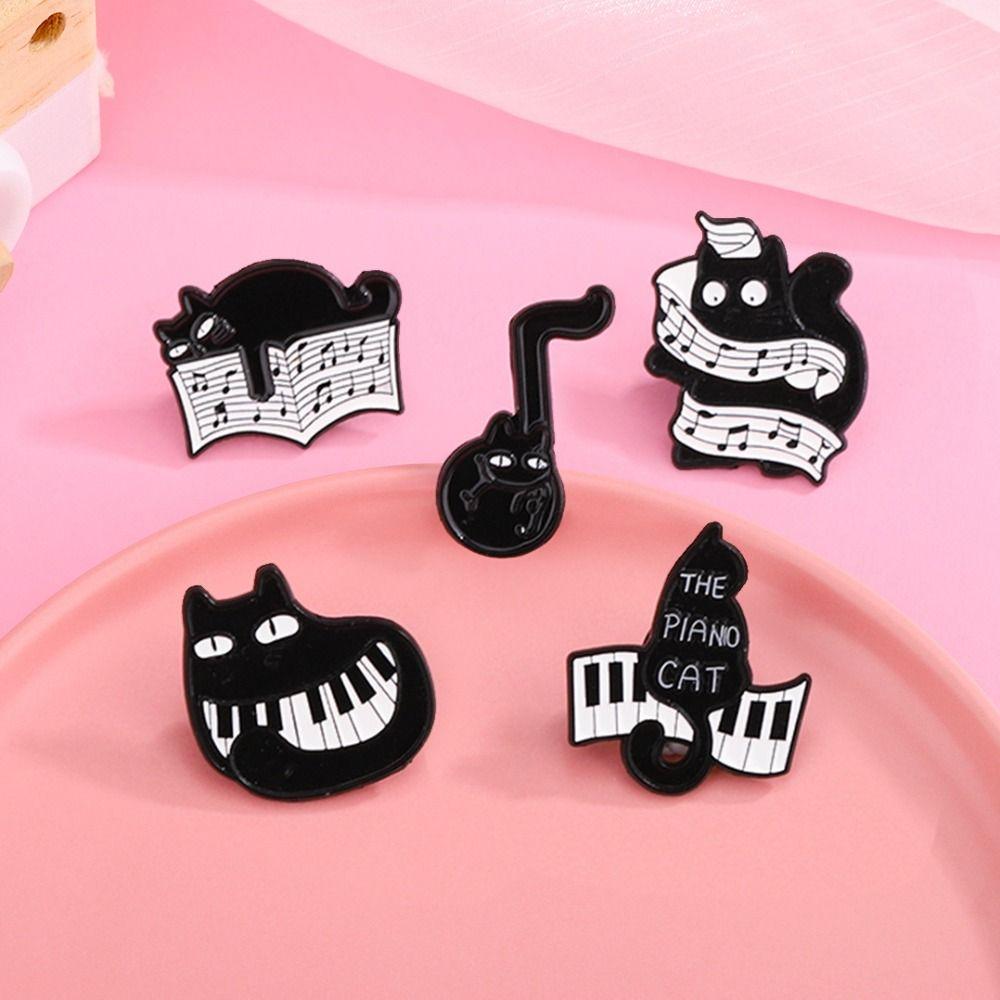 Мультяшный эмалевый значок с черным котом, Мурлыкающий котенок, Брошь-нота, Ювелирное изделие, Значок кота с пианино, Юбки