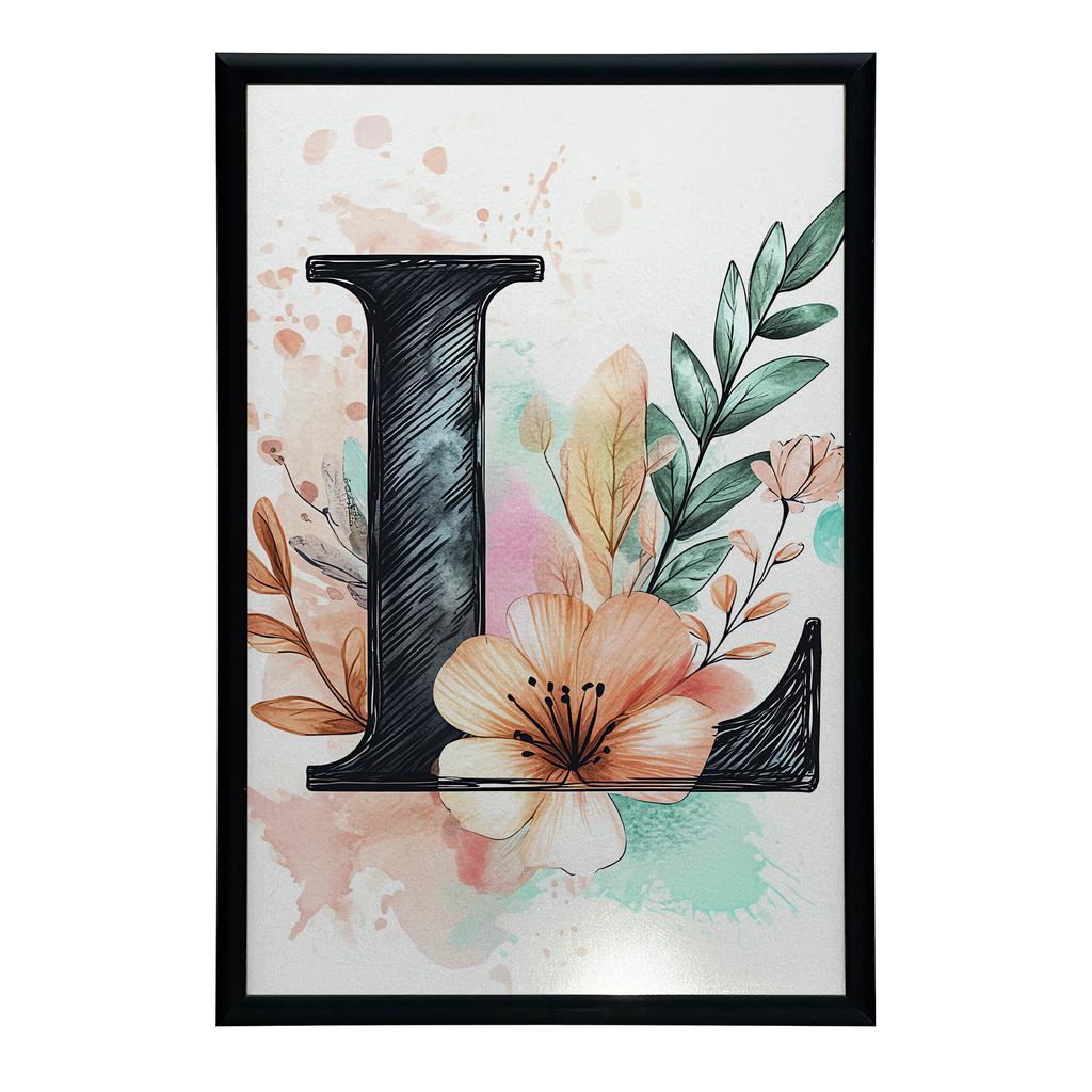 1x Плакат Буква ""L"" в Цветочной Композиции, 70x100 см, рама деревянная светлый дуб, матовая бумага 230 г/м²