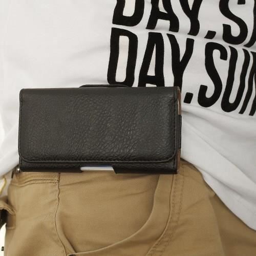 ÉTUI HORIZONTAL HOUSSE CLIP CEINTURE PINCE EN PU SOUPLE POUR => SAMSUNG GALAXY S7 EDGE DUOS > NOIR