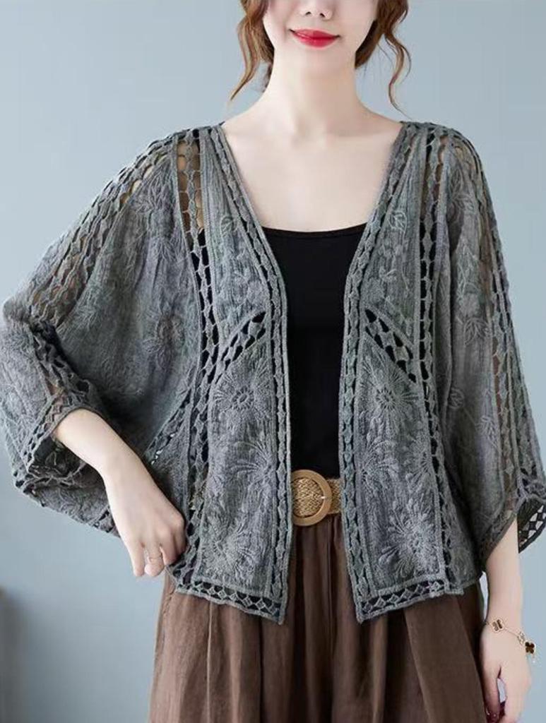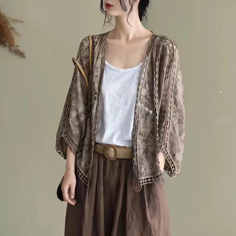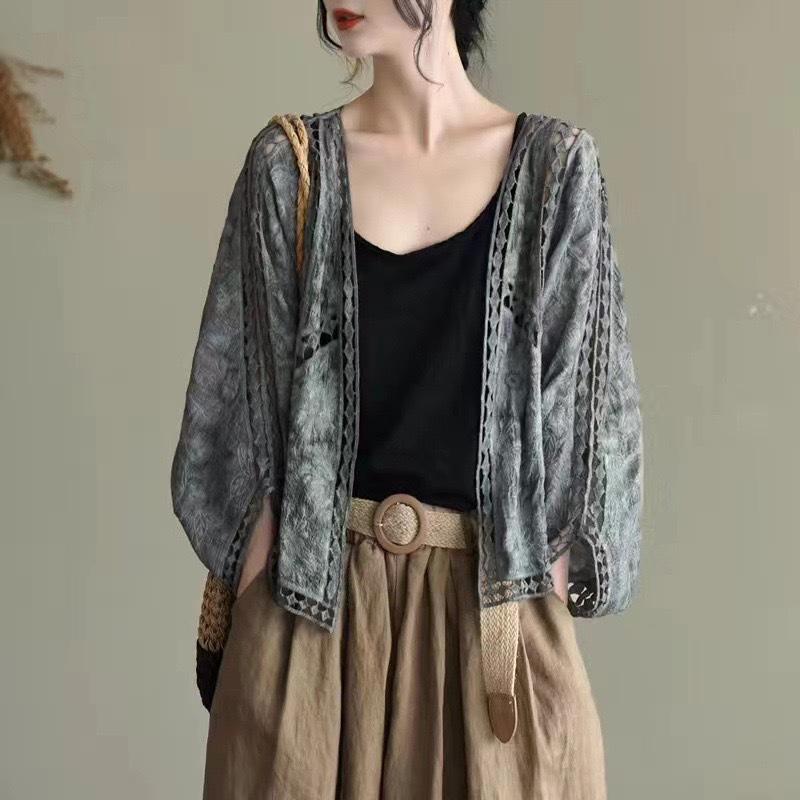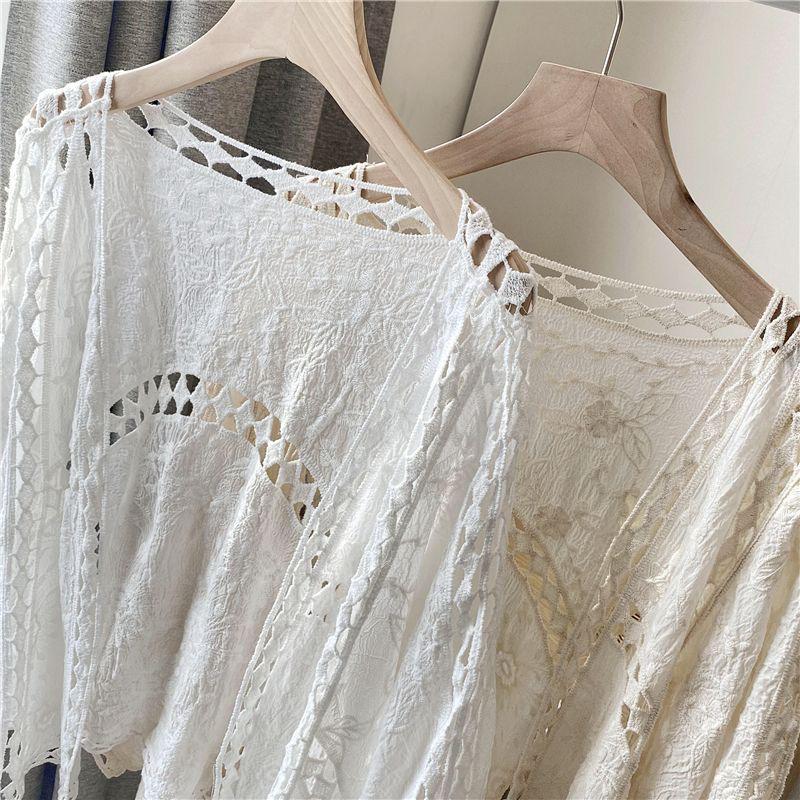 Европейский и американский летний кружевной вязаный кардиган женский пляжный солнцезащитный жакет