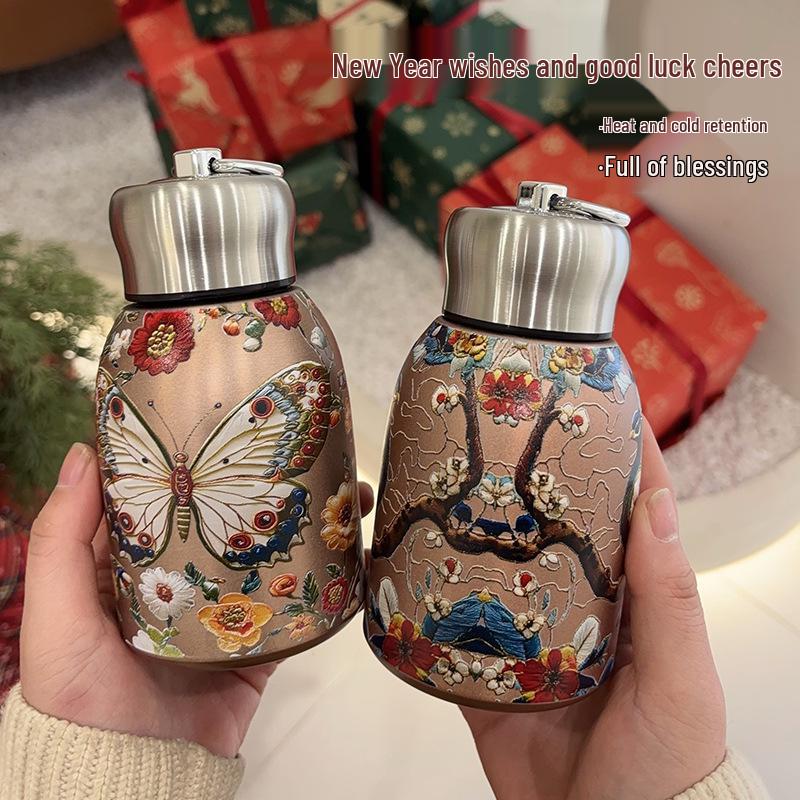 Элегантная ретро золотая чашка-термос с бабочкой и павлином - креативный подарок для дам