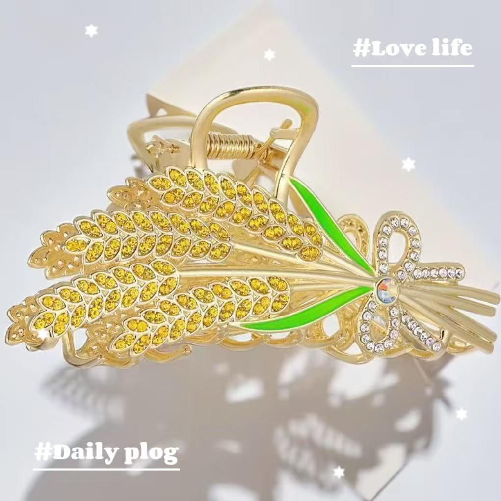 Металлическая заколка для волос в виде золотого пшеничного колоска - Элегантный аксессуар для прически пучок и подарок