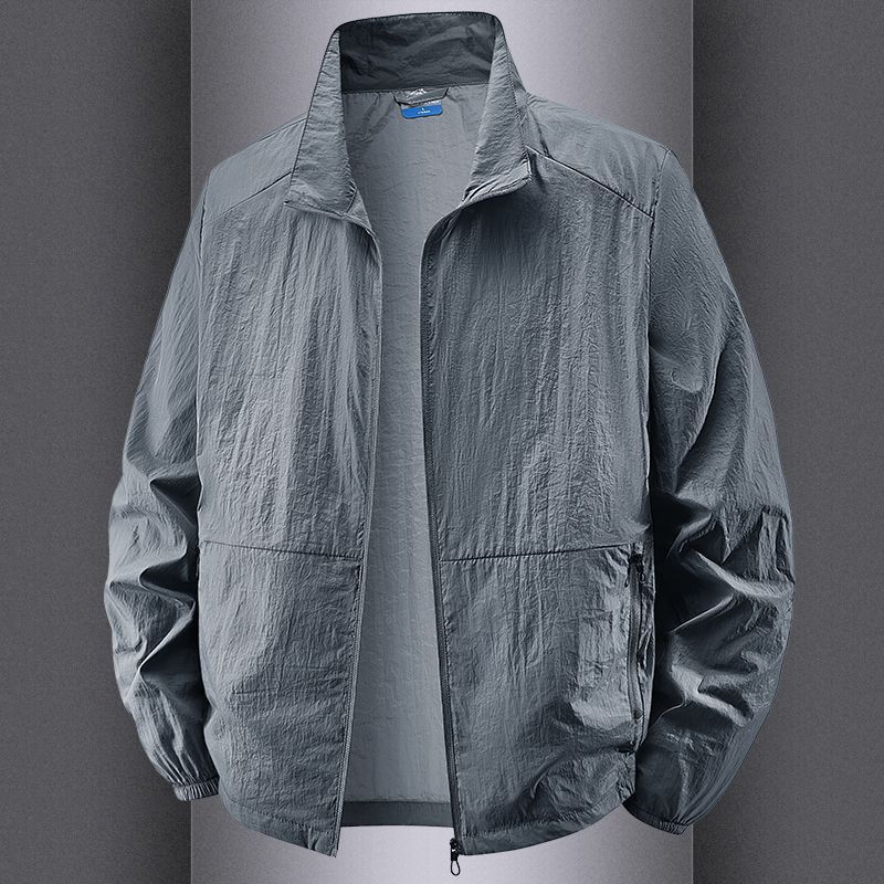 Мужская солнцезащитная одежда Летняя уличная солнцезащитная куртка Большого размера Куртка со стойкой воротником Быстросохнущая одежда для кожи Ветровка Солнцезащитная одежда