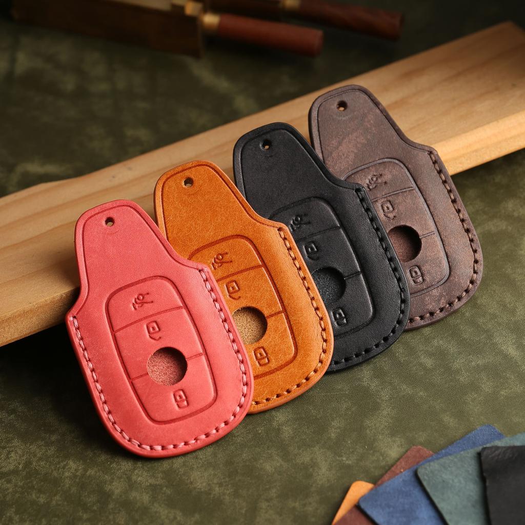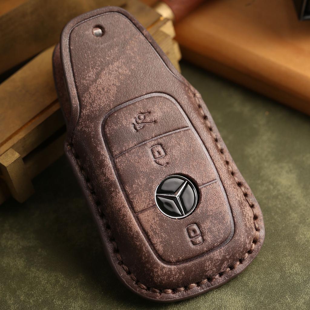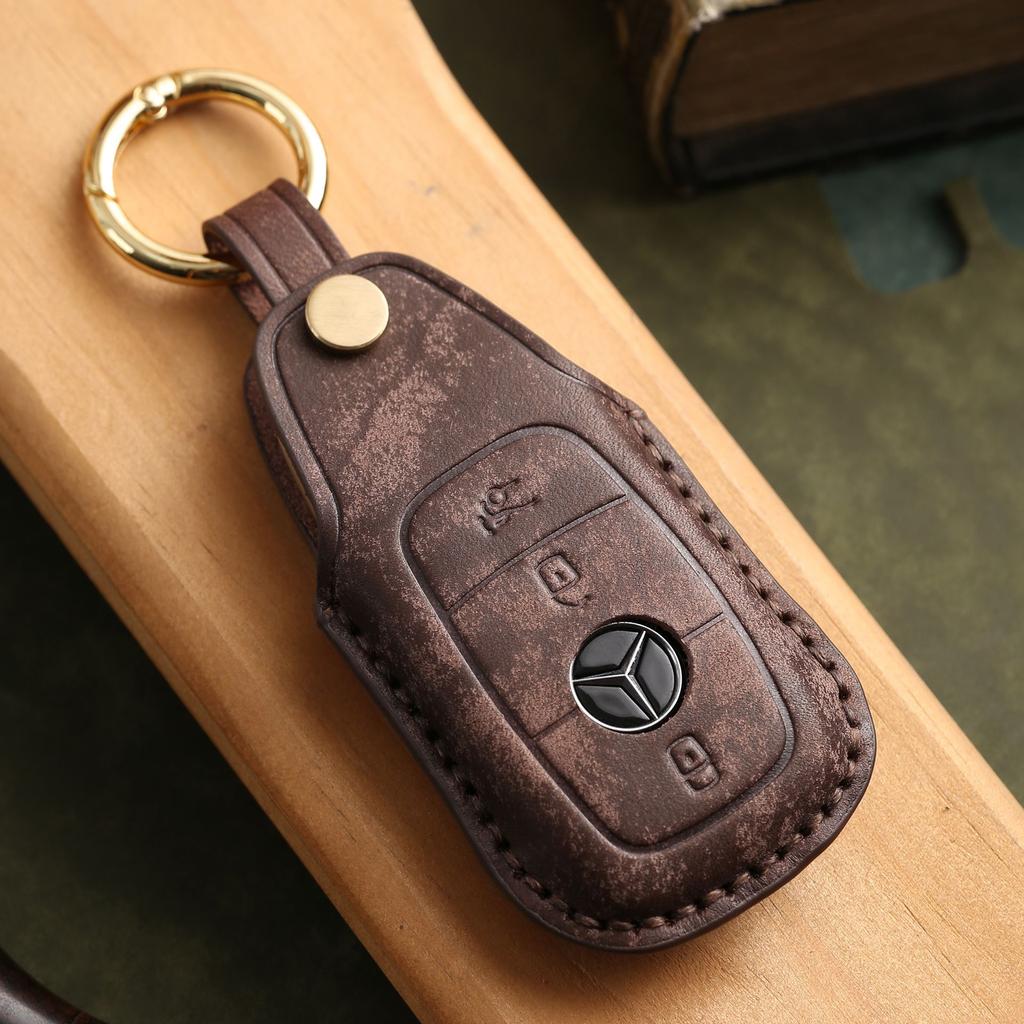Индивидуализированный чехол для ключа подходит для нового Mercedes-Benz E300L, кожаный, чисто ручной работы, защитная пряжка для ключа автомобиля