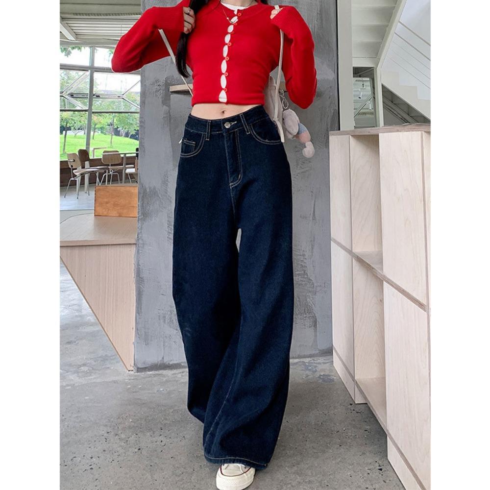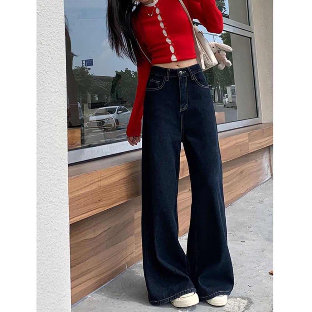 Свободные брюки прямого кроя, новые джинсовые брюки для осени и зимы, женские универсальные драпирующиеся брюки, закрывающие бедра, с эффектом выстиранности, модные
