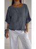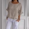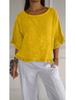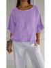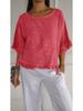 2025 Женская рубашка свободного кроя с коротким рукавом из хлопка и льна - Однотонная, с круглым вырезом, в европейско-американском стиле.