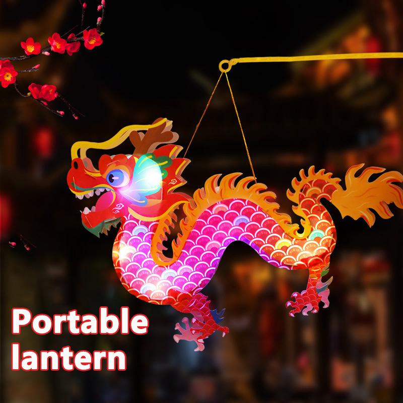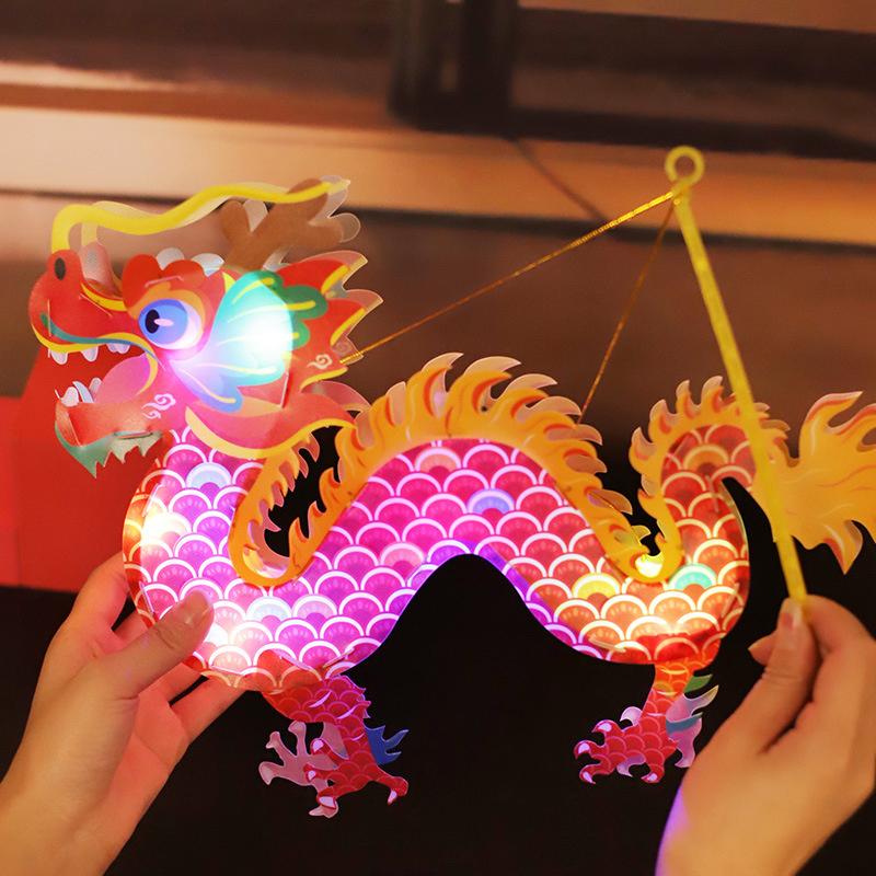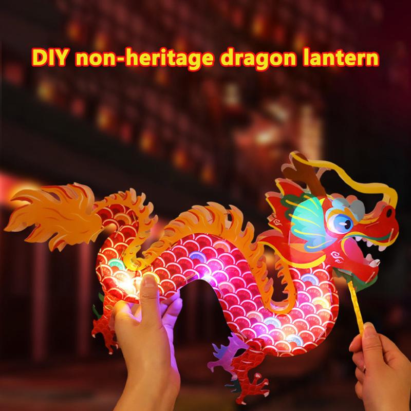 2024 Праздник середины осени Фестиваль фонарей Ручная работа DIY Фонарь Материал Сумка Детский ручной светящийся ПВХ Дракон Фонарь Lan