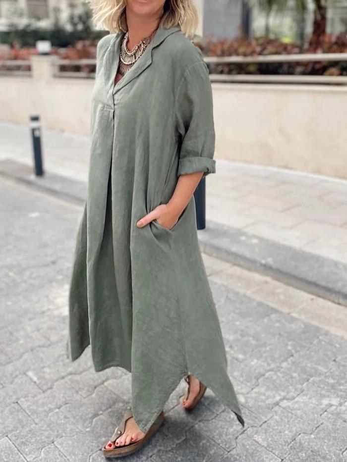 Это стильное платье-рубашка с длинным рукавом воплощает идеальное сочетание европейской и американской моды.. Изготовлено из высококачественного хлопкового материала, обеспечивает исключительный комфорт и воздухопроницаемость, идеально для любого сезона.. Платье имеет шикарный воротник с лацканами и практичные карманы для дополнительной функциональности.. Его универсальный дизайн делает его идеальным как для повседневных выходов, так и для более изысканных случаев, что делает его незаменимой вещью для любого гардероба.