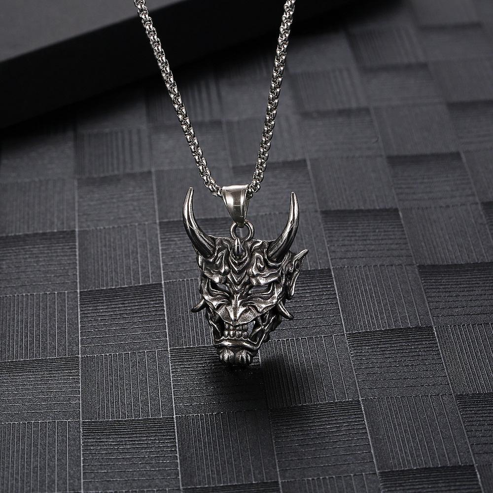 Темное ретро ожерелье с маской Праджни, длинные рога, король-призрак, кулон из титановой стали для мужчин и женщин