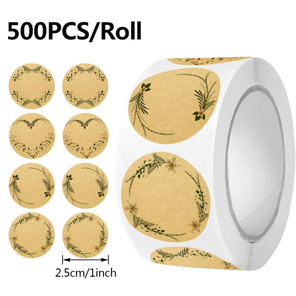 500 шт. пустых наклеек для рукописного текста, цветочные наклейки из крафт-бумаги, для выпечки, подарков, декоративные самоклеящиеся этикетки
