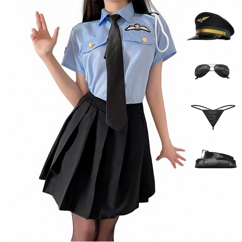 В этот набор входят футболка с коротким рукавом, мини-юбка, галстук, шляпа, солнцезащитные очки, ремень и брюки. (Солнцезащитные очки и обувь не входят в комплект. Дизайн и цвет аксессуара могут отличаться.) Этот классический костюм полицейской формы включает в себя плиссированную юбку и нижнее белье для милого, молодежного образа!
