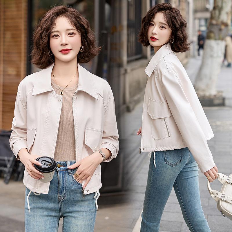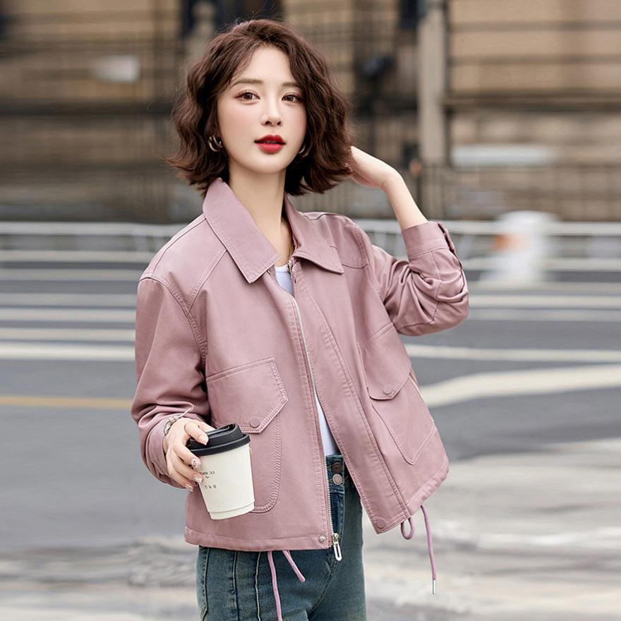 Винтажная кожаная куртка женская весна и осень новая свободная черная короткая куртка мотоциклетный топ