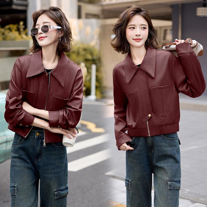 Женская куртка хаки из кожи, новая маленькая короткая мотоциклетная куртка топ на весну и осень