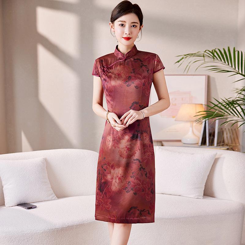 Женское шелковое платье лето новое высококлассное роскошное шелковое платье ципао — купить товар онлайн с бесплатной доставкой по всему миру!
