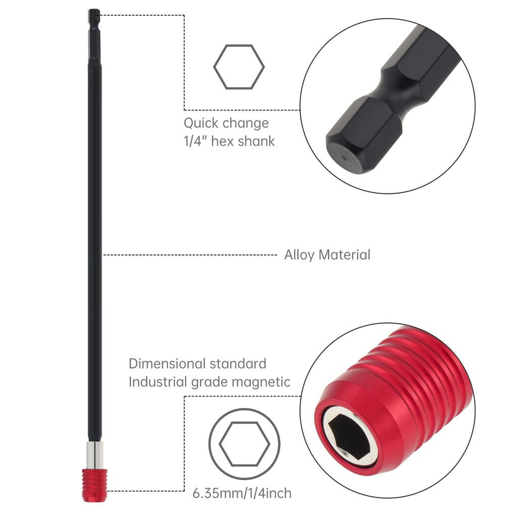- Длины 300 мм для работы: Выполняйте широкий спектр проектов с одним удобным размером 12". От труднодоступных мест до глубокого бурения, этот набор обеспечивает идеальные удлинители для бытового ремонта, строительных работ и профессионального применения.