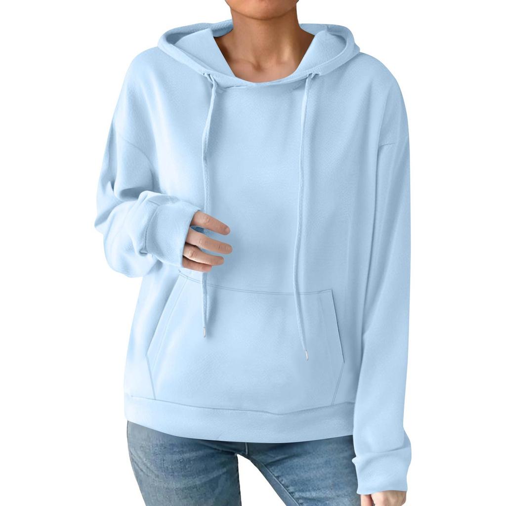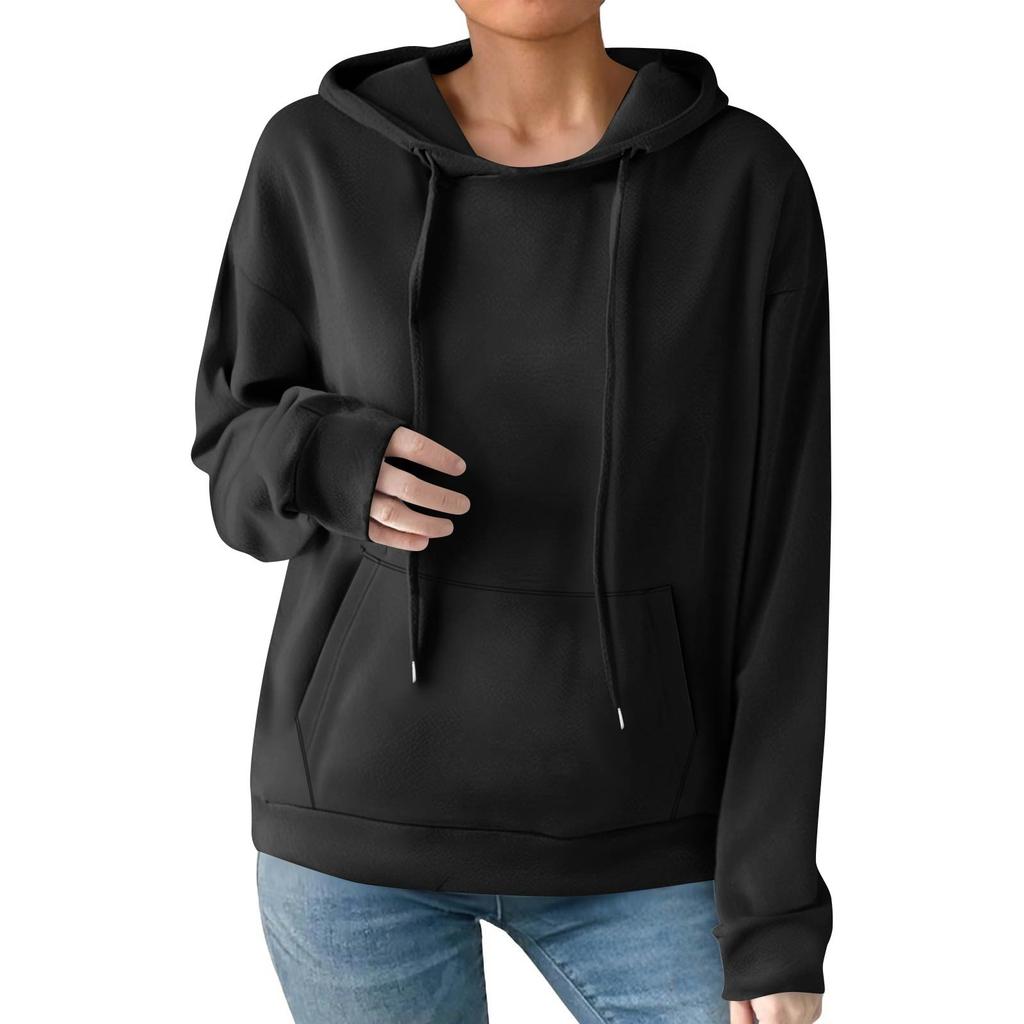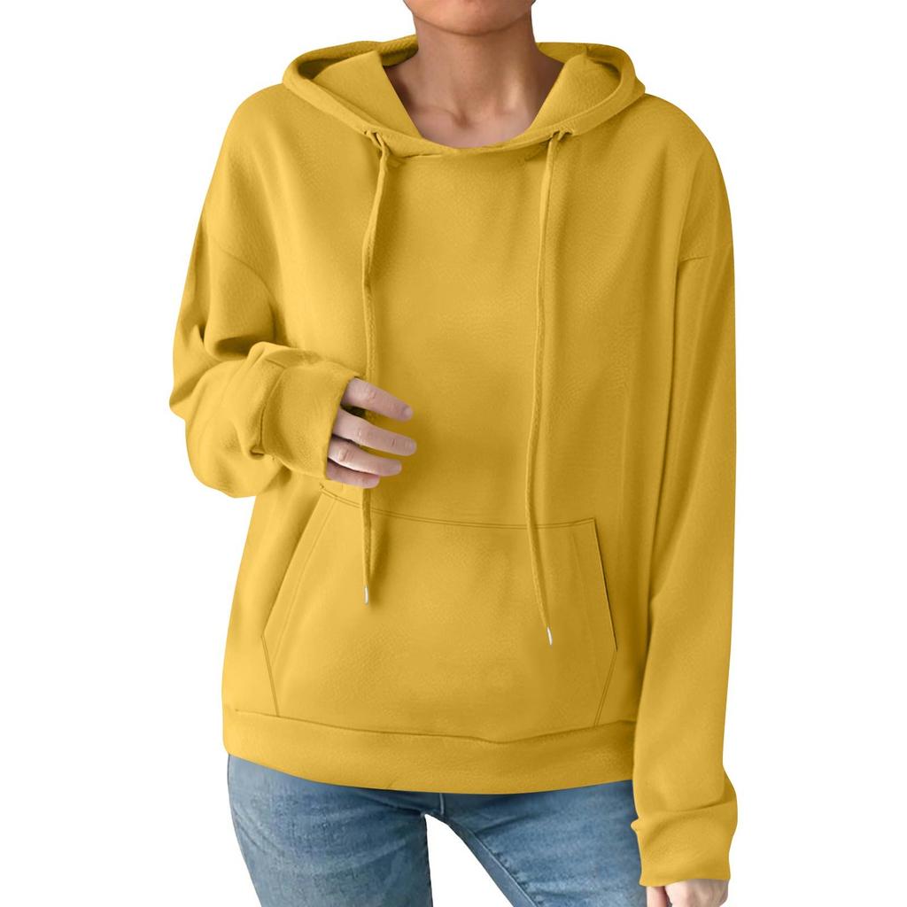 Женская модная повседневная толстовка с капюшоном, однотонная, с карманом, с длинным рукавом