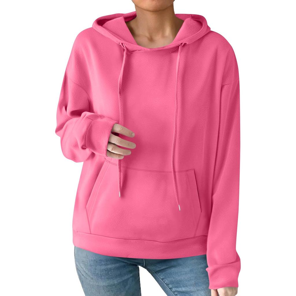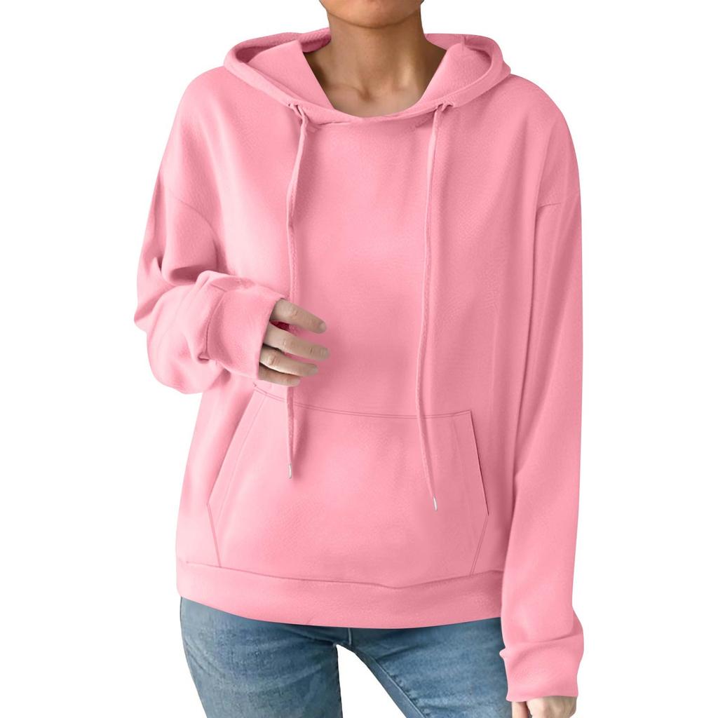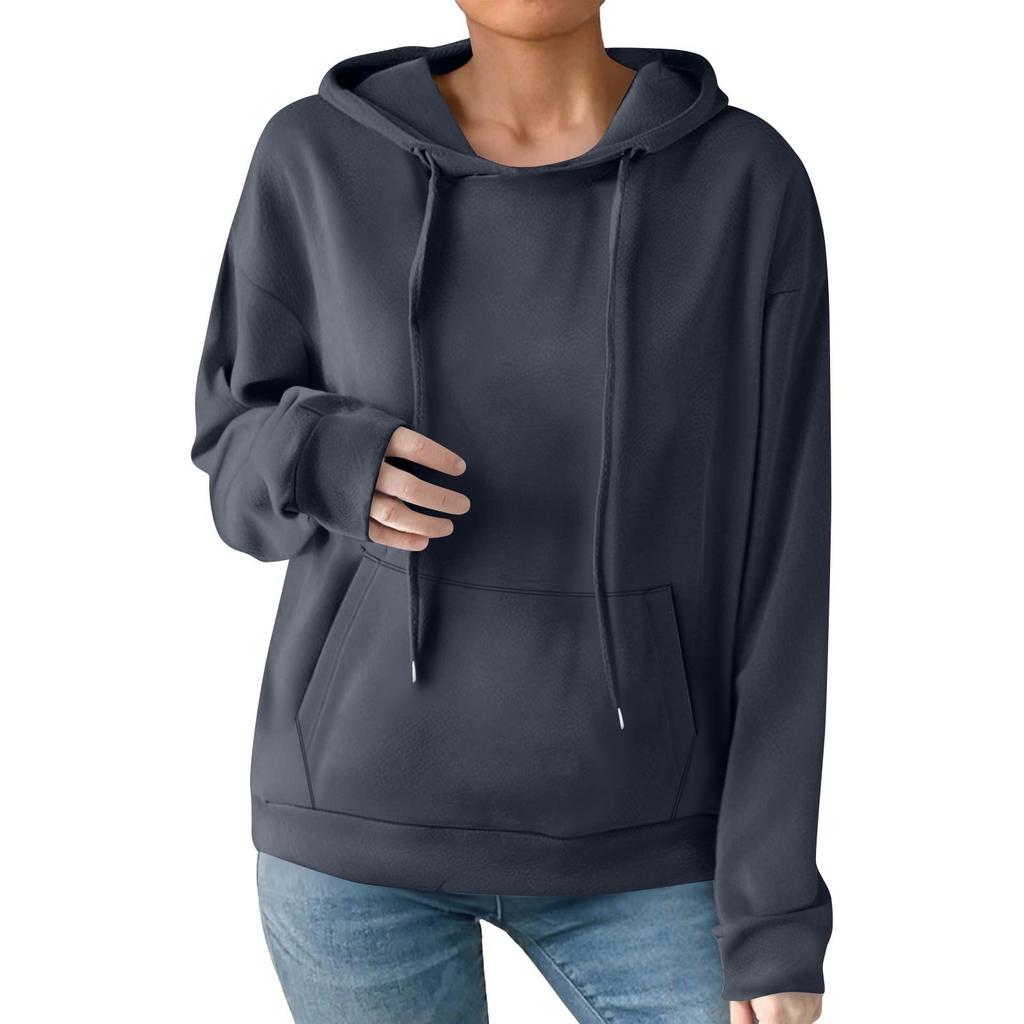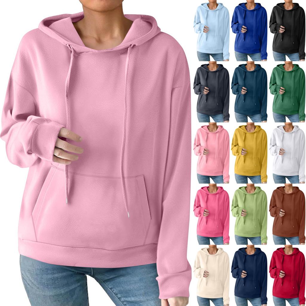Женская модная повседневная толстовка с капюшоном, однотонная, с карманом, с длинным рукавом