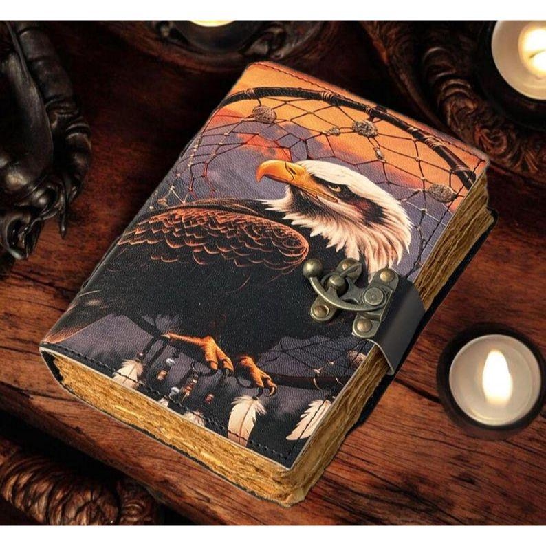 Leather Journal Bald Eagle Blank Spell Book Of Shadows American Eagle Printed Vintage Leather Journal Old Deckle Edge Paper