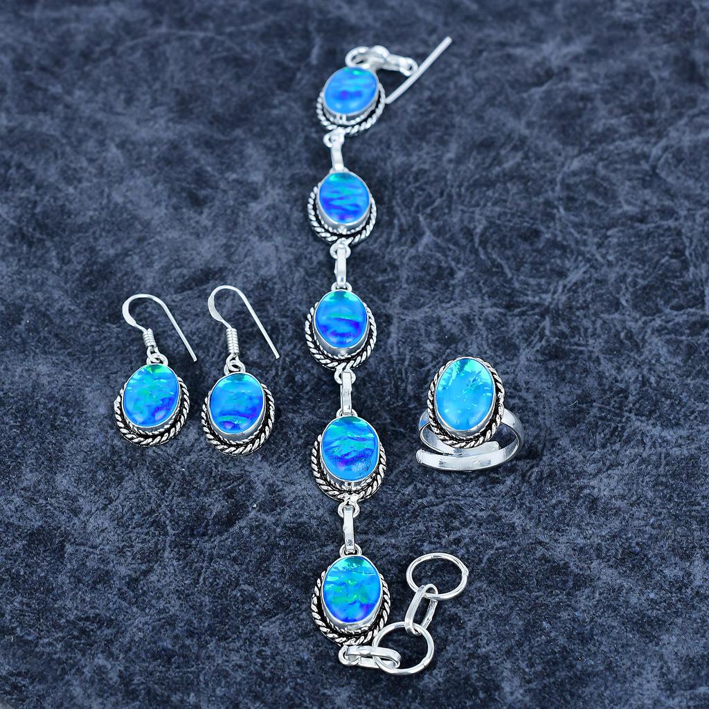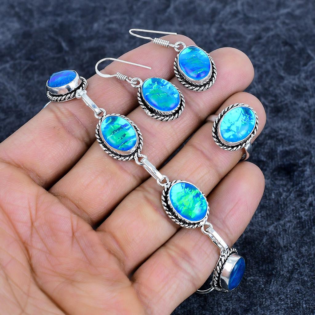 Blue Triplet Opal Gemstone Handmade 925 Sterling Silver Jewelry Set M-3196
