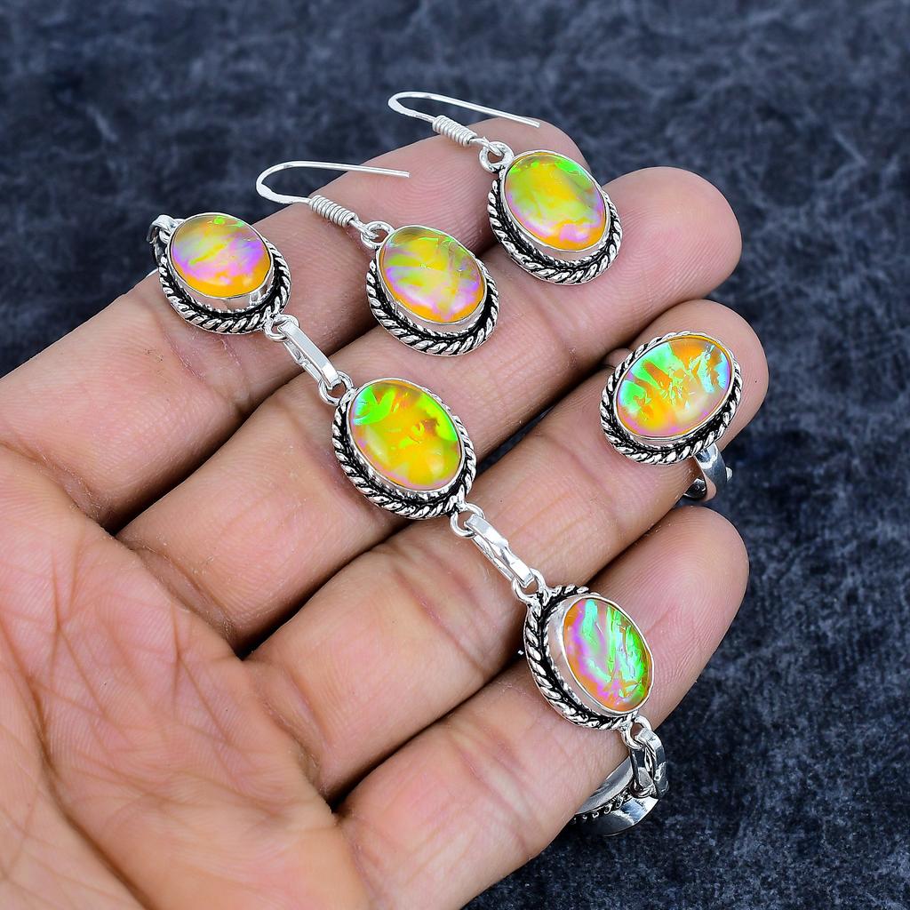 Оранжевый Триплет Опал Драгоценный камень Ручной работы 925 Стерлинговое серебро Набор украшений M-3198