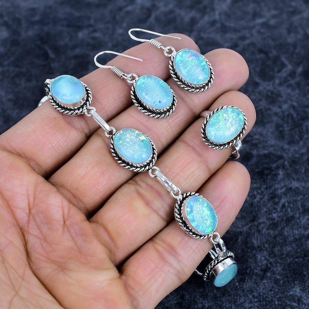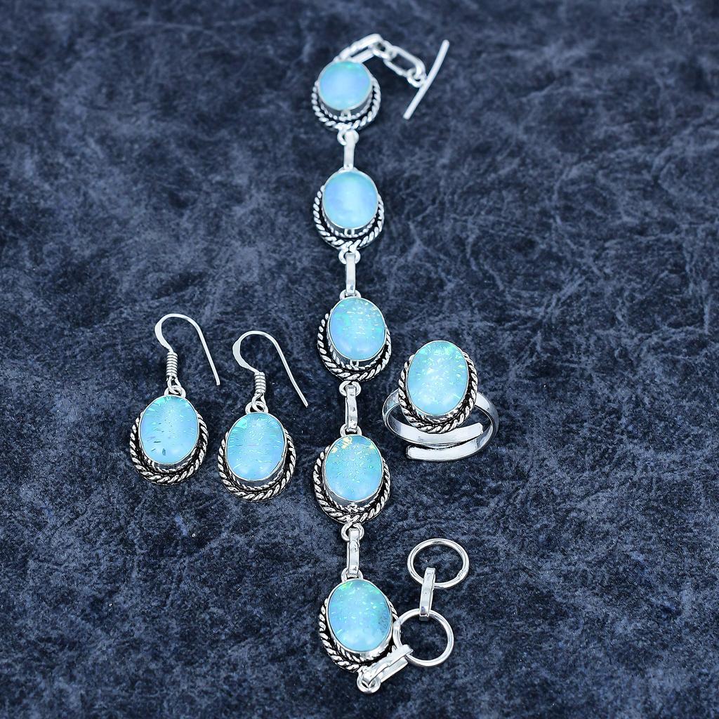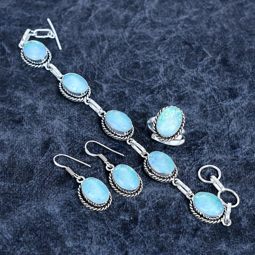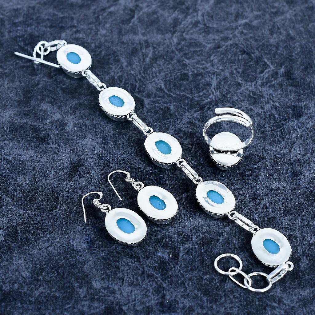 Синий триплет опал драгоценный камень ручной работы набор украшений из серебра 925 пробы M-3199