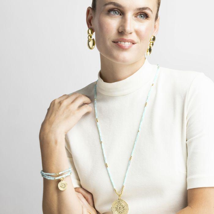 Bracelet - LUXENTER - Thyu - Cristal bleu - finition or jaune 18k - Largeur 11 mm