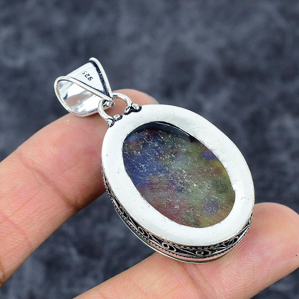 Аммолит Драгоценный камень Ручная работа 925 Стерлинговое серебро Ювелирное изделие Подвеска 2,09" M-3279