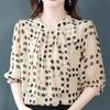 Летняя элегантная и минималистичная повседневная мода, рубашка с круглым вырезом, в горошек, свободного кроя оверсайз, универсальная, с рукавами средней длины для женщин