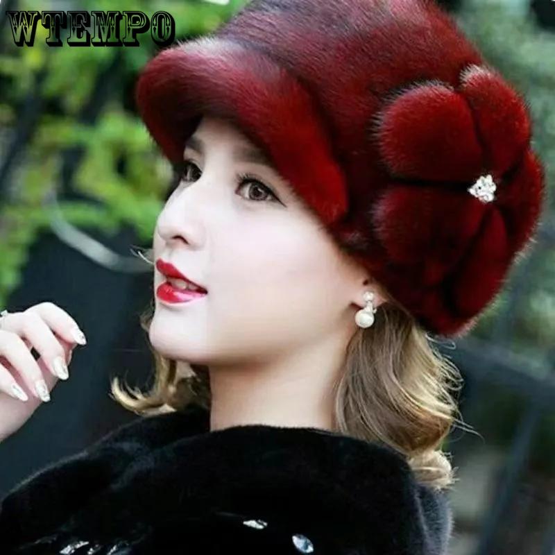 WTEMPO Большой цветок Ретро Элегантный Теплый Утолщенный Мягкий Женский Шляпы Осень Зима Повседневный Универсальный Плюшевые Шапки Однотонный Ветрозащитный Защищающий от холода Шляпы