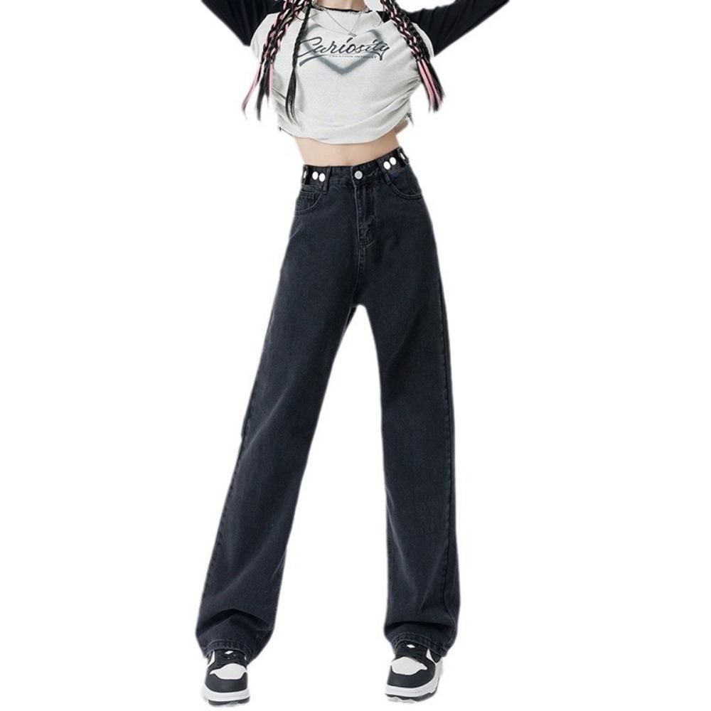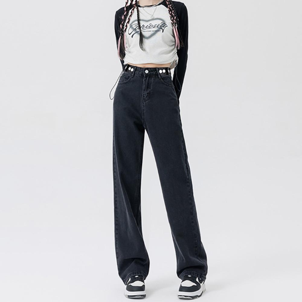 Осенние новые джинсы с высокой талией, узкие широкие штанины, женские прямые, драпирующиеся, свободные и тонкие, маленькие брюки до пола