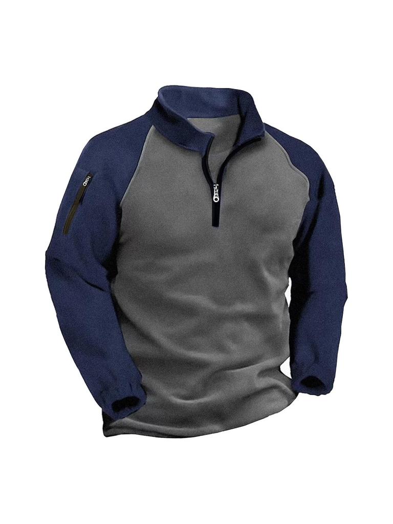 Мужская тактическая флисовая куртка в европейско-американском стиле - Теплый полар-флис, однотонная, воротник-стойка для осени/зимы.
