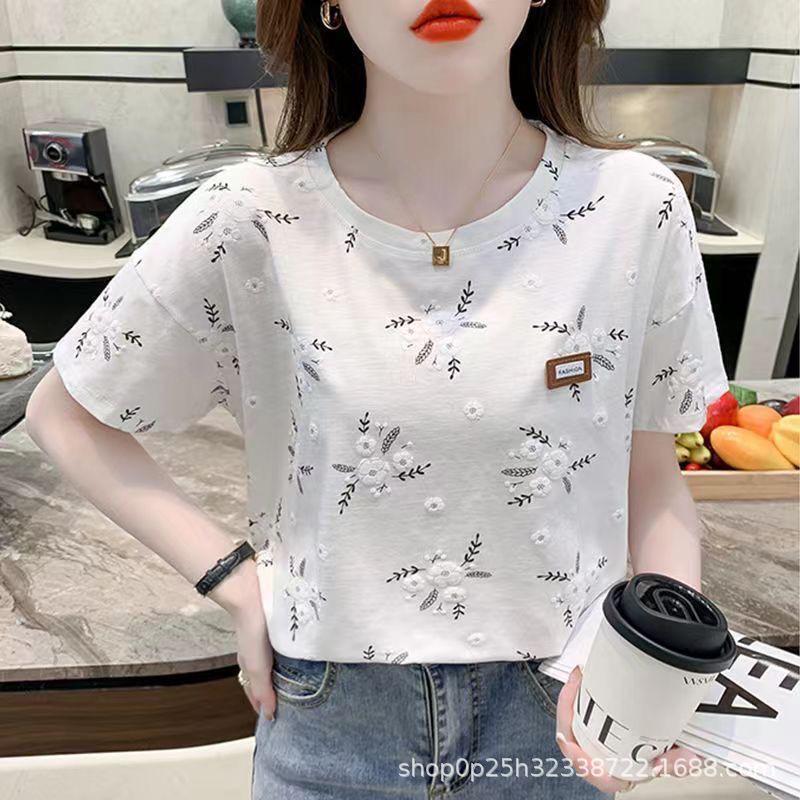 2024 Женская белая футболка с коротким рукавом в корейском стиле, свободного кроя, с круглым вырезом - Модный и креативный дизайн