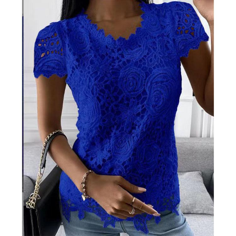 Обновите свой летний гардероб этим элегантным топом с коротким рукавом, выполненным в европейском и американском стиле.. Этот топ, полностью изготовленный из изысканного кружева, имеет однотонный узор, излучающий изысканность.. Круглый вырез горловины создает классический образ, а лоскутная техника и стеганые декоративные элементы добавляют нотку уникального очарования.. Идеальный как для повседневных, так и для торжественных случаев, этот универсальный кружевной топ — обязательное дополнение к коллекции любой модной женщины.