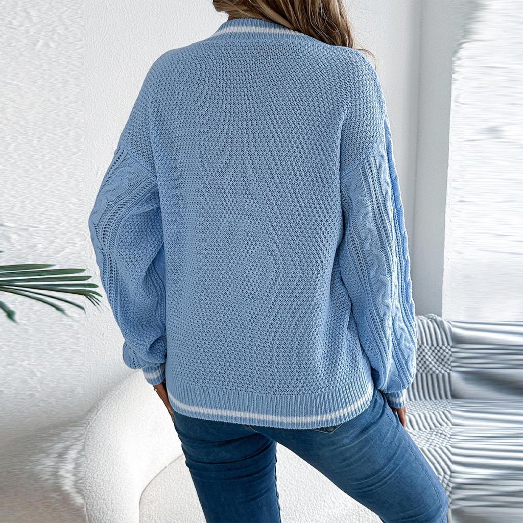 Женский свитер с V-образным вырезом и длинными рукавами в стиле колор-блок