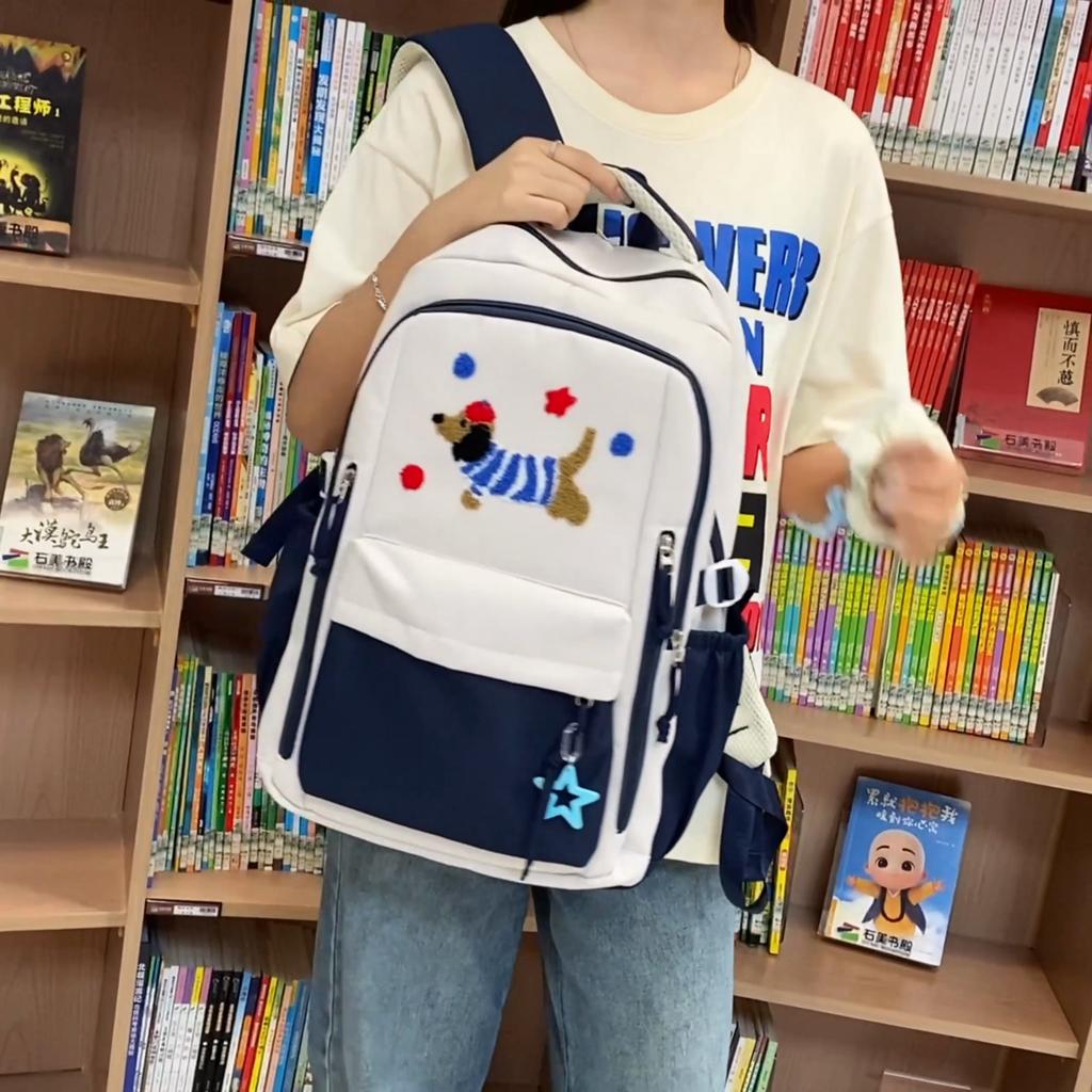 Контрастный цвет, мультяшный рюкзак, для учеников средней школы, легкий школьный рюкзак, женский рюкзак большой вместимости