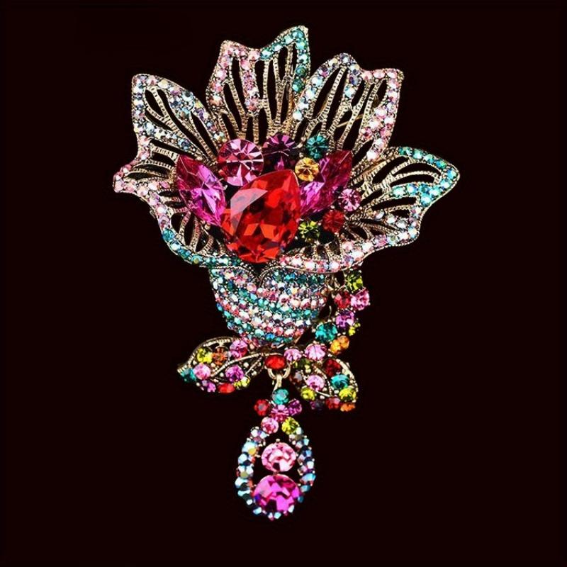Женская брошь-булавка с цветком, кристаллом и стразами
