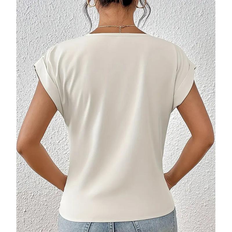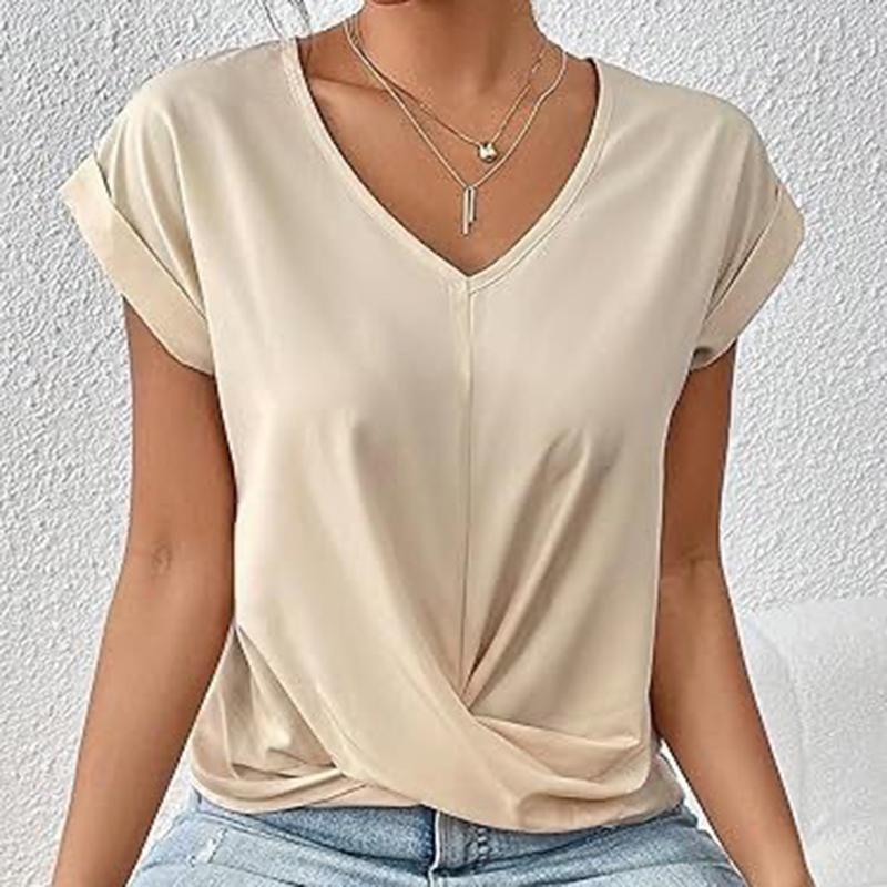 Женская летняя футболка с коротким рукавом, V-образным вырезом, узлом, дышащая, однотонная, пуловер, топ