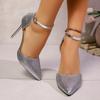 Сексуальные сандалии для женщин Слайды Туфли-лодочки Новые Тонкие Туфли на Супер Высоком Каблуке для Женщин Блестящие Кристальные Сандалии с Острым Носком Летние Сандалии