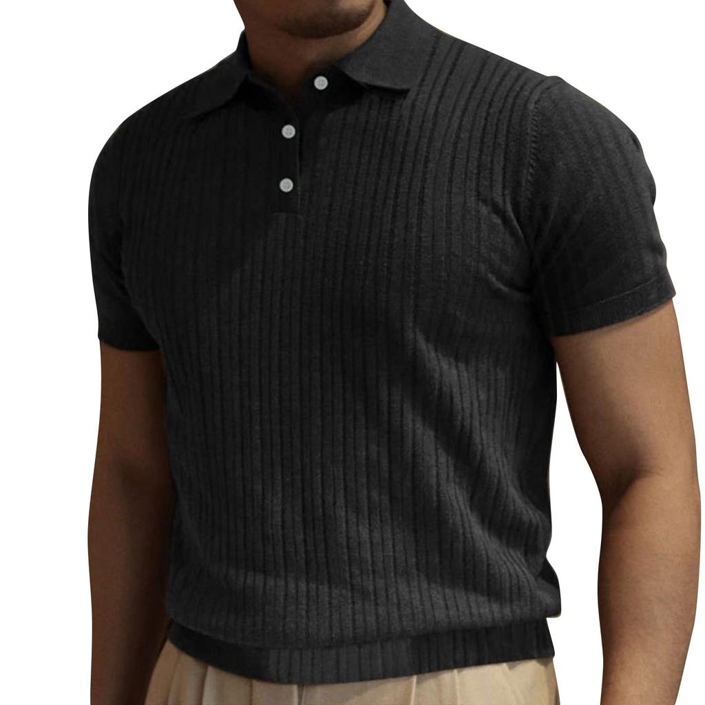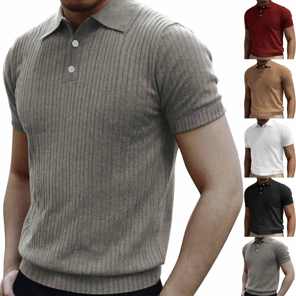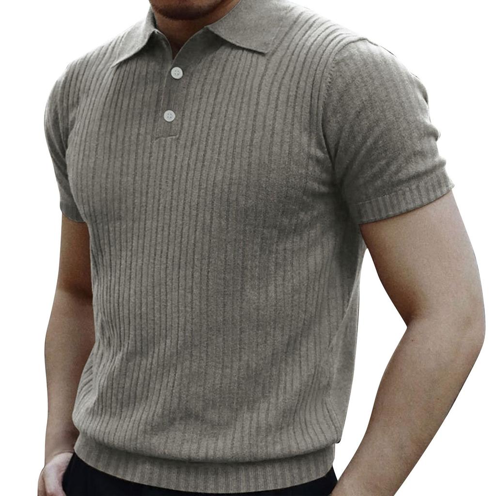 Мужской однотонный полосатый топ с пуговицами и лацканами с коротким рукавом, повседневные модные топы для мужчин