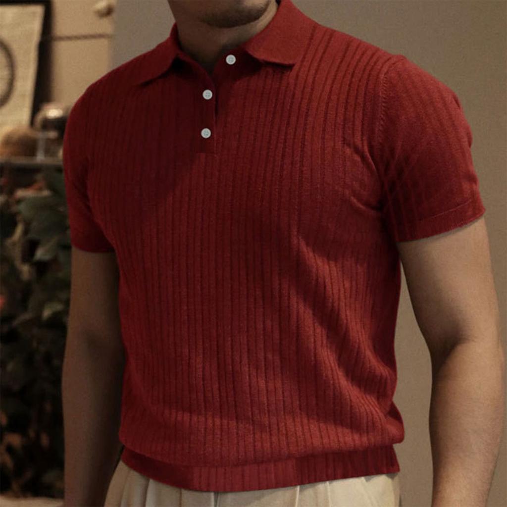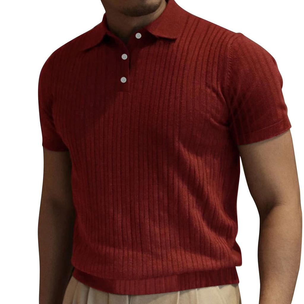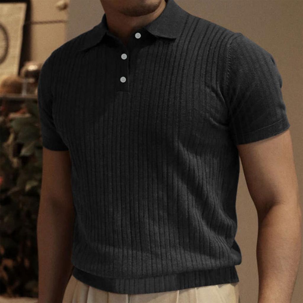 Мужской однотонный полосатый топ с пуговицами и лацканами с коротким рукавом, повседневные модные топы для мужчин