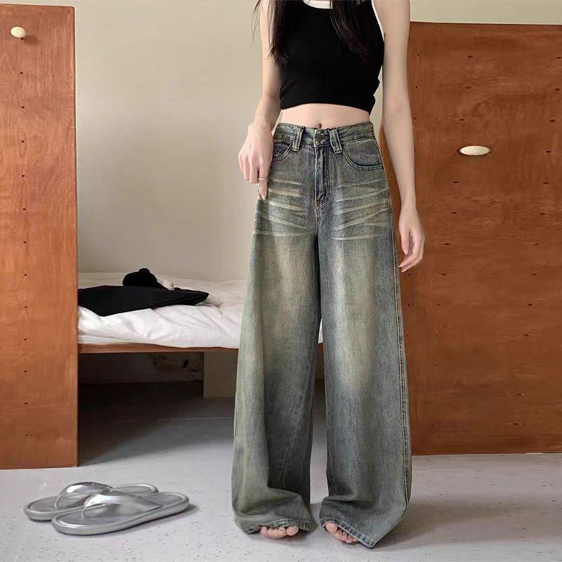 Весенне-осенние винтажные джинсы с широкими штанинами женские свободного кроя с высокой посадкой, стройнящие, повседневные прямые длинные брюки до пола — купить товар онлайн с бесплатной доставкой по всему миру!
