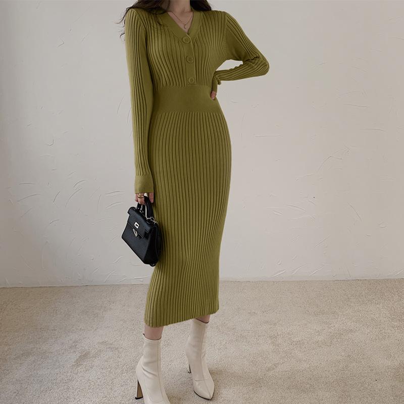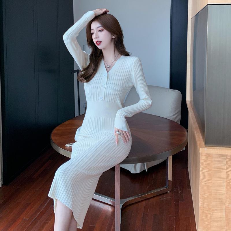 Трикотажное платье женское с длинными рукавами облегающее, прикрывающее талию, юбка длинная юбка темперамент осень и зима
