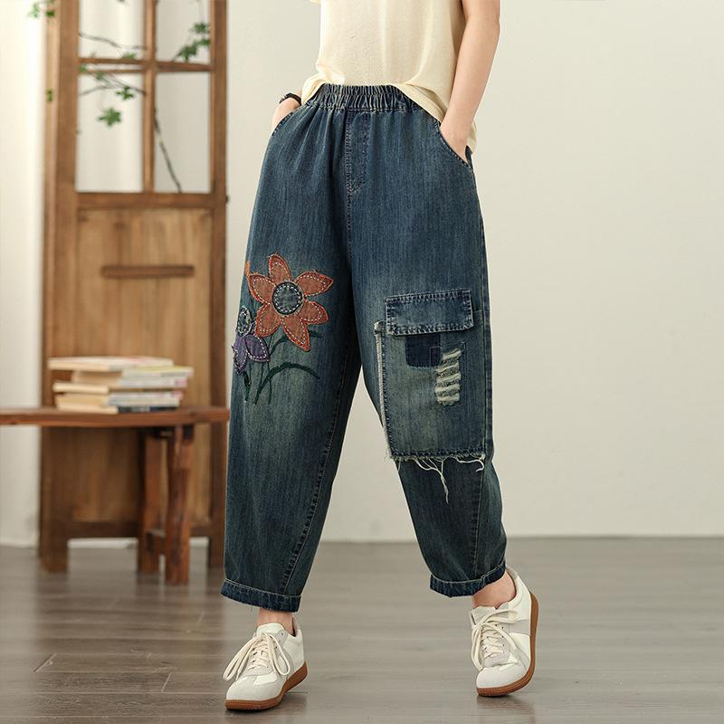 Джинсы гаремы женские свободные с большим карманом винтажные пэчворк с высокой талией джинсовые укороченные брюки женские повседневные уличная одежда женские брюки 2025