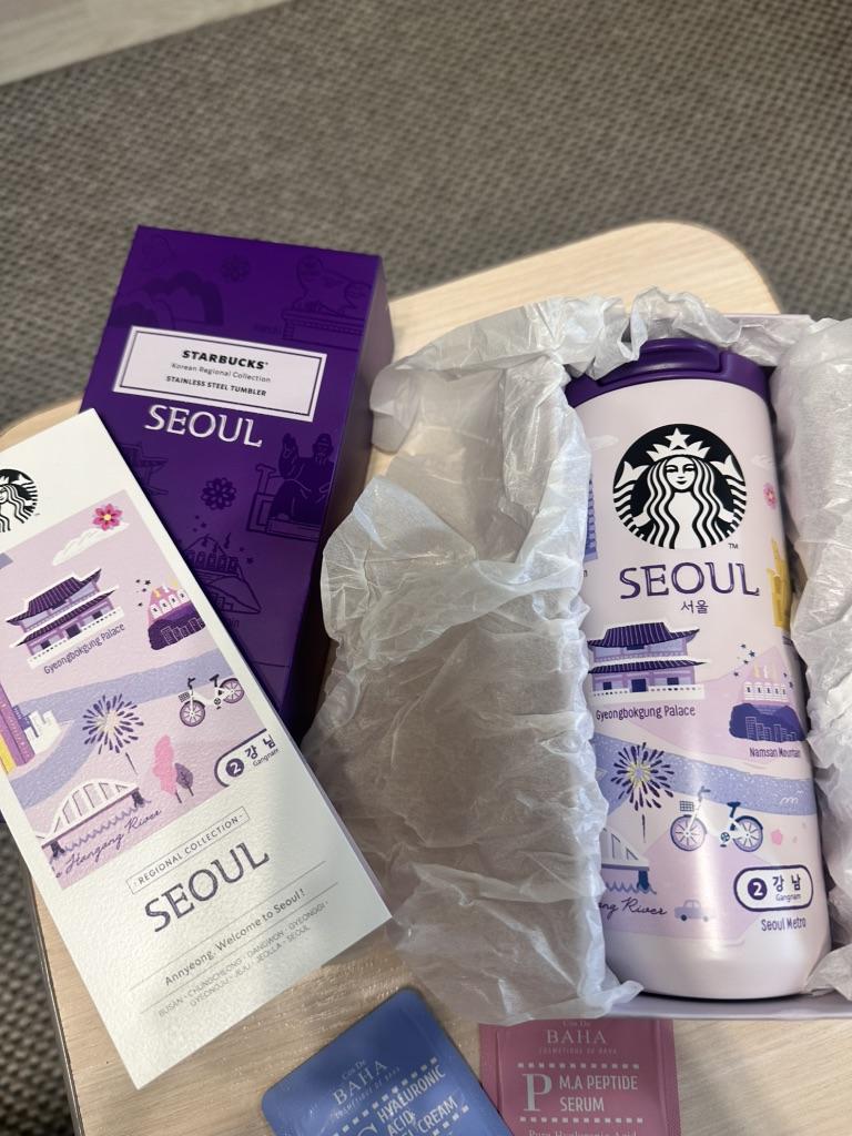 Стакан из нержавеющей стали с символическими местами и скульптурами Сеула/Чеджу.