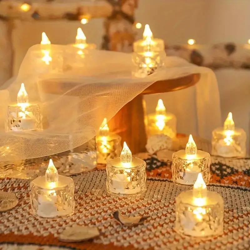 24 шт. Светодиодные электронные свечи без пламени с рисунком, Чайные свечи, Подходят для дней рождений, свадеб, вечеринок