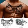 Тату-наклейка на грудь с трехсторонним Буддой и цветком дракона через плечо, новая полудоспешная буквенная тату-наклейка против пота